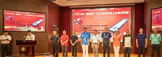 长三角城市老体协桌上冰壶联盟委员会执行主任石贤义等出席开幕仪式,并宣布2025 年长三角城市老年人桌上冰壶球联赛南京站比赛开幕。
