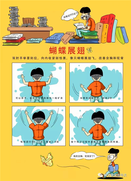4、蝴蝶展臂 提高肩胛稳定性,改善圆肩驼背姿态,提高肩关节力量,改善肩颈部紧张。