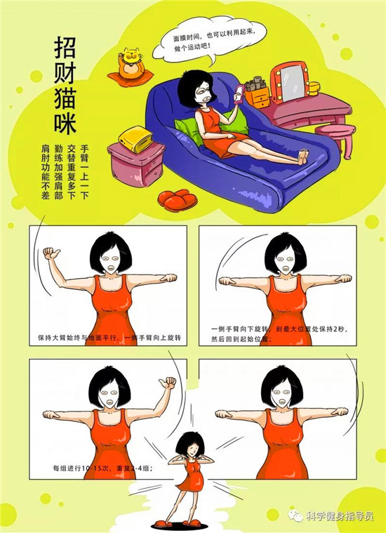 5、招财猫咪 提高肩胛稳定性,增加肩袖力量,缓解肩颈部紧张,肩部塑型。