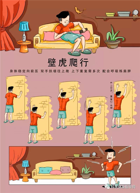 6、壁虎爬行 提高核心稳定性,改善协调性,强化上肢力量,缓解肩颈部紧张。