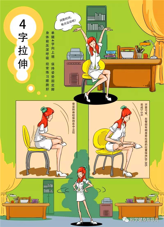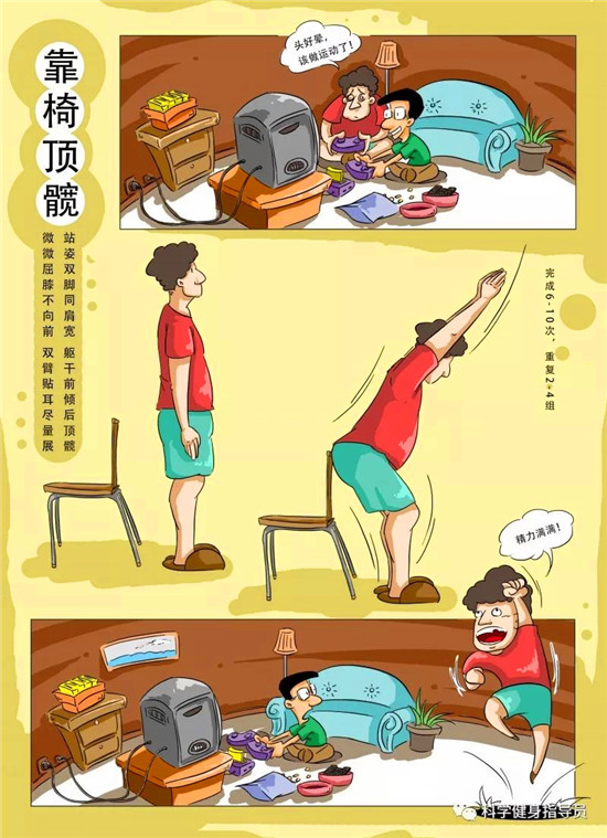 3、站姿拉伸 改善下背部紧张,预防腰部和膝关节劳损。
