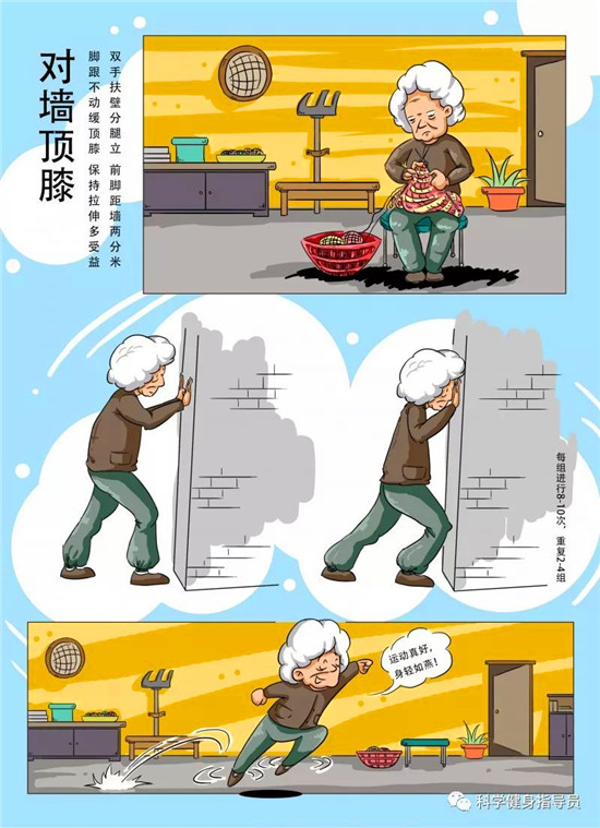 2、对墙顶膝 提高踝关节灵活性,改善步态,缓解下肢紧张。