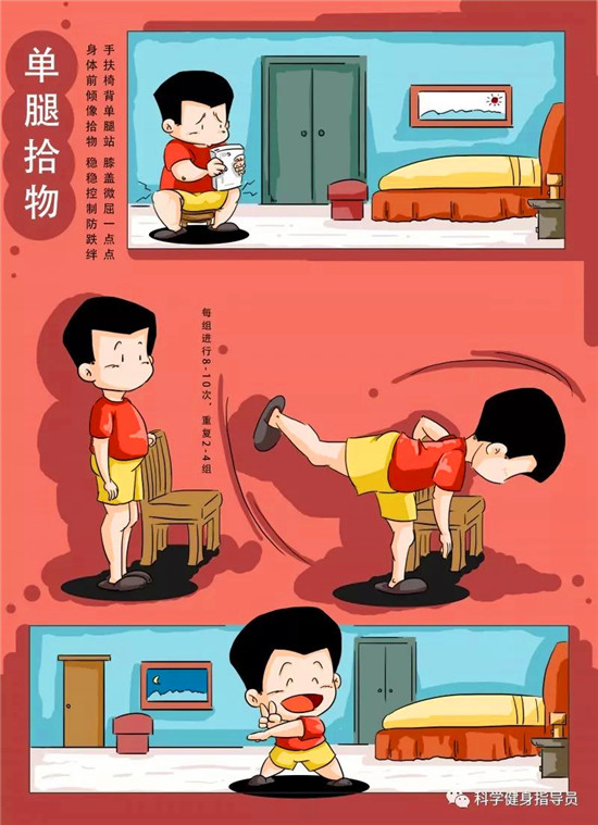 3、单腿拾物 提高身体平衡与稳定能力,防止跌倒,缓解下肢紧张。