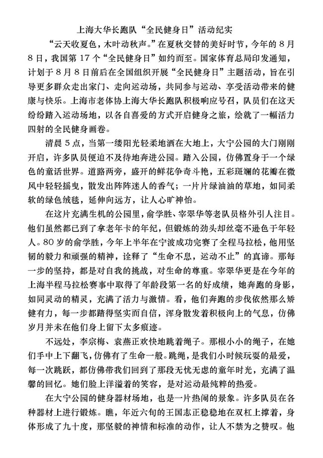 上海老体协长跑\健步走委员会总第243期《简讯》